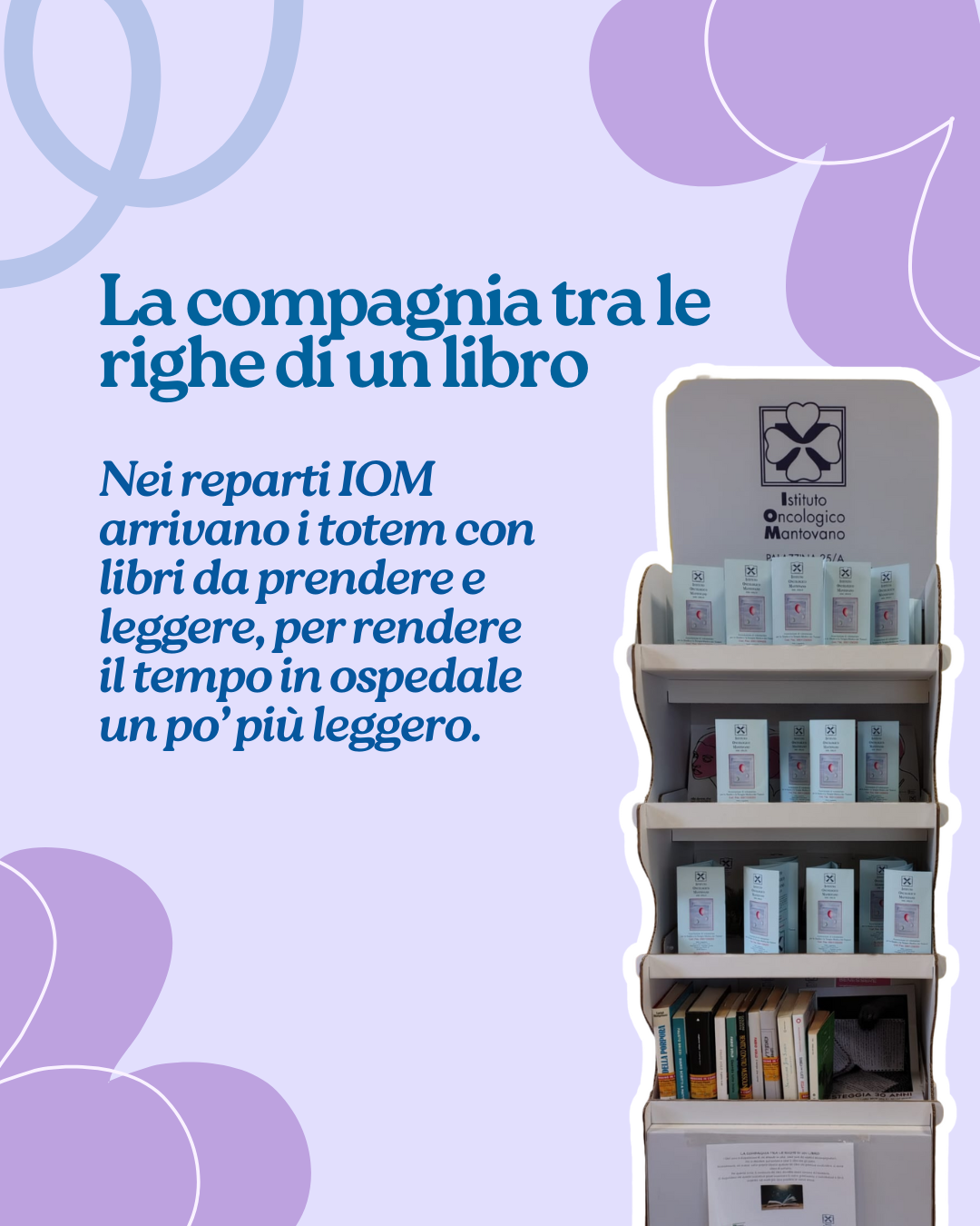 Lo IOM ha avviato una nuova iniziativa pensata per rendere il tempo trascorso in ospedale un po’ più leggero e accogliente: nei reparti sono arrivati i totem con libri da prendere, sfogliare e legg